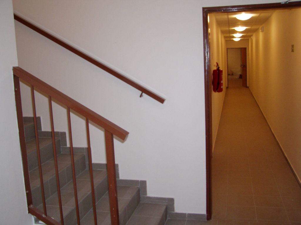 V druhém patře najdeme ubytovací část s několika pokoji a společnou kuchyňkou. Každý pokoj má sociální zařízení se sprchovým koutem.