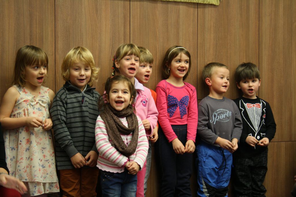 Jako první přišly popřát děti z Mateřské školy s paní učitelkou Věrou Hanzelínovou. Děti s velkým nadšením zazpívaly, zatancovaly a sklidily zasloužený potlesk.