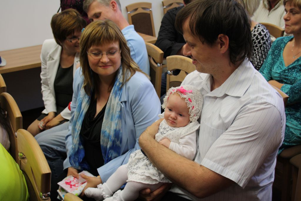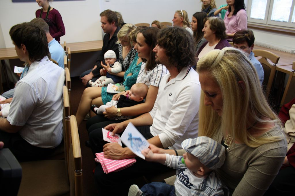 Milou básní nás uvítala nová členka Sboru pro občanské záležitosti paní Danuše Tomešová a poté pokračovaly děti z Mateřské školy, které zarecitovaly každému miminku zvlášť a předaly vlastnoručně vyrobené přáníčko.
