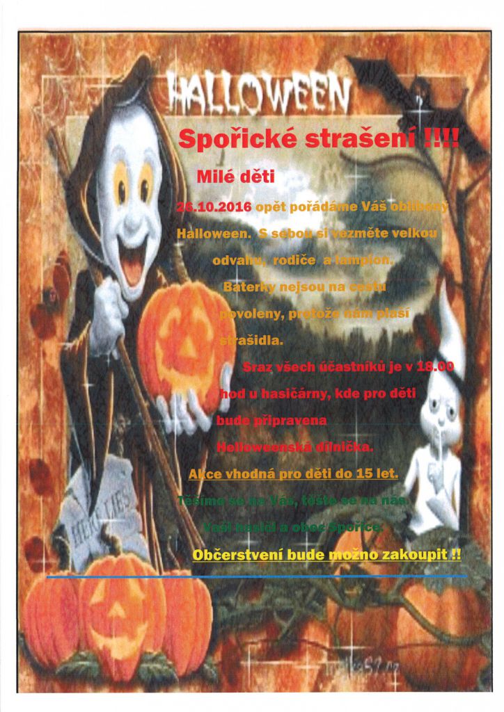 Srdečně zveme všechny co se rádi bojí na SPOŘICKÉ STRAŠENÍ, které startuje ve středu 26. října 2016 od 18:00 hodin v Hasičské zbrojnici.
