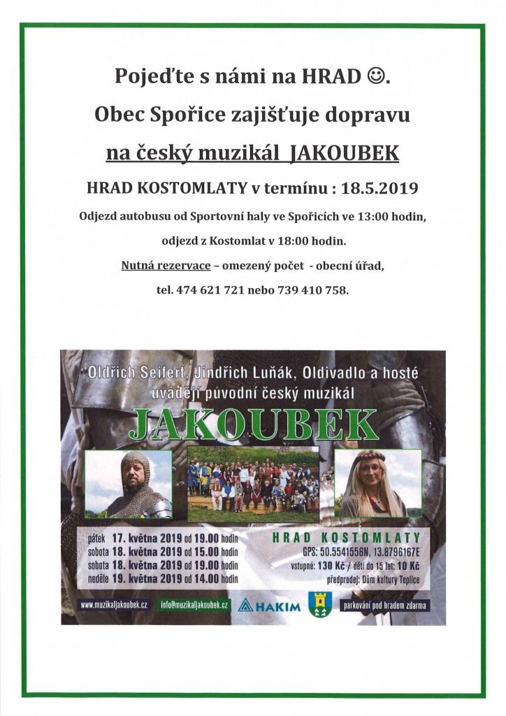 Obec Spořice zajišťuje dopravu na český muzikál Jakoubek na hradě Kostomlaty.