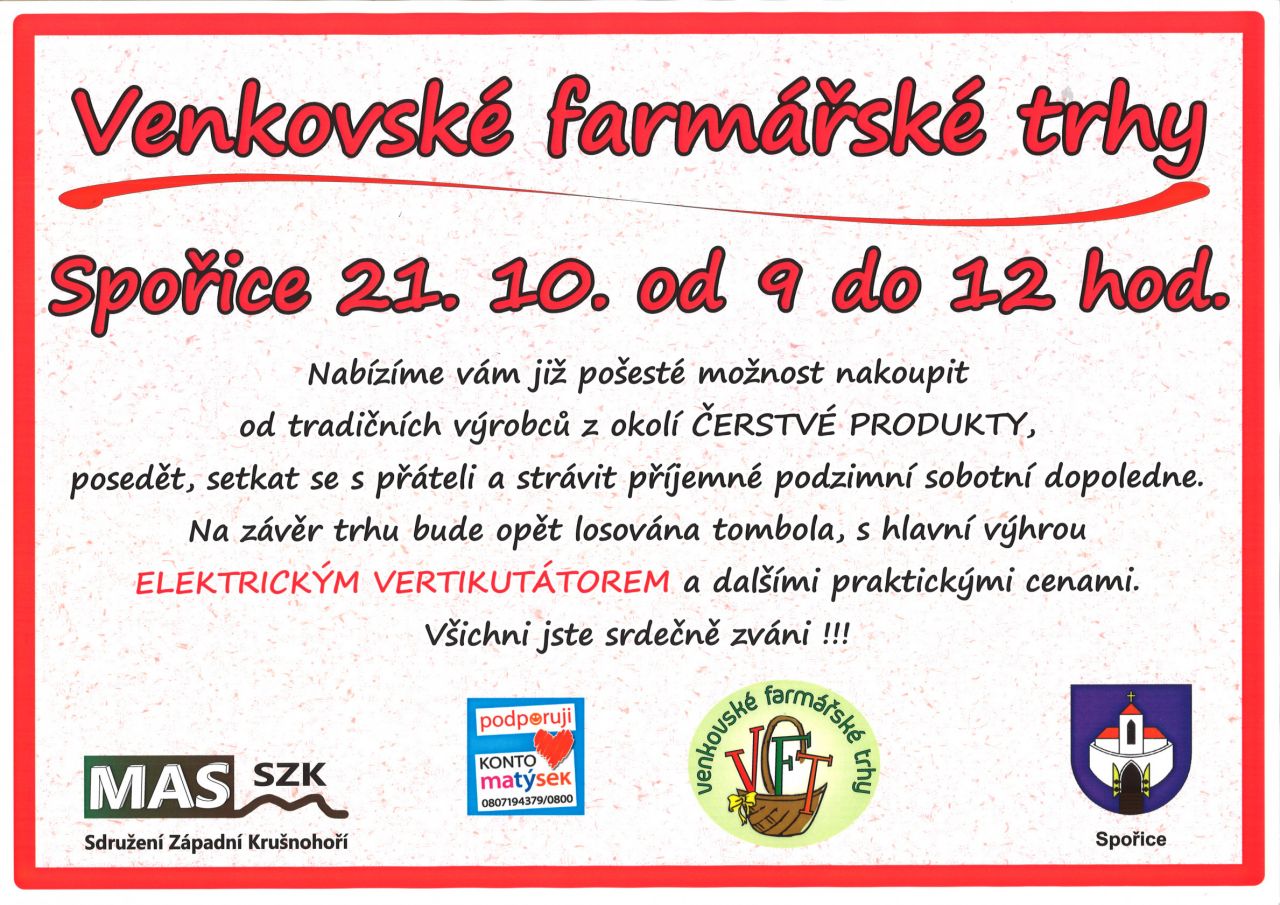 Můžete opět nakoupit od tradičních výrobců z okolí čerstvé produkty, posedět, setkat se s přáteli a strávit příjemné podzimní sobotní dopoledne. Na závěr trhu bude opět losována tombola, s hlavní výhrou elektrickým vertikutátorem a dalšími praktickými cenami.