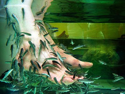 Ošetření nohou pomocí rybek Garra Rufa