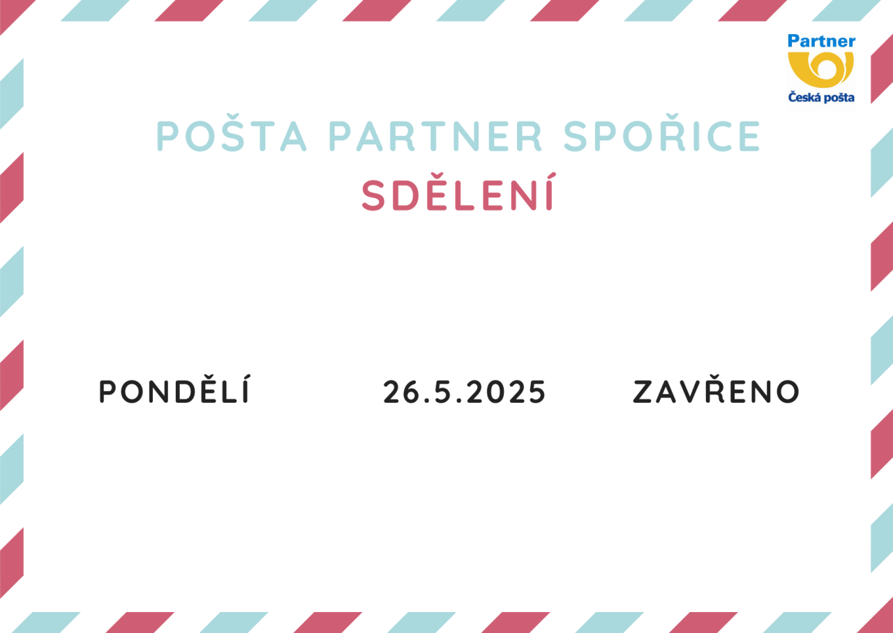 Dne 26.5.2025 bude Pošta Partner Spořice zavřena.