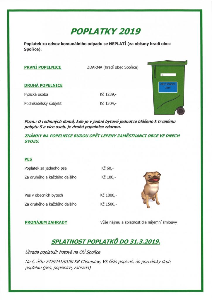 Splatnost poplatků je 31.3.2019.