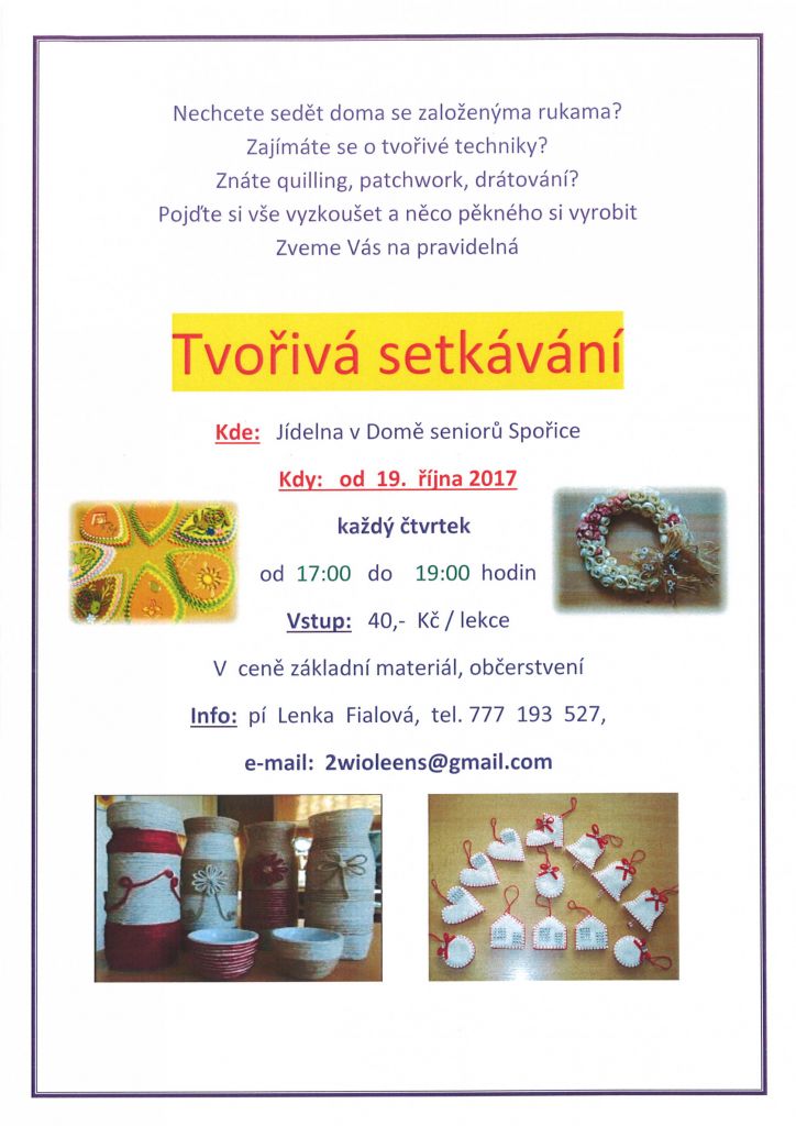 Zprávy a aktuality z obce - POZVÁNKA - TVOŘIVÁ SETKÁNÍ