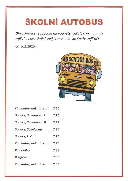 S prvním školním dnem začíná jezdit opět školní autobus.