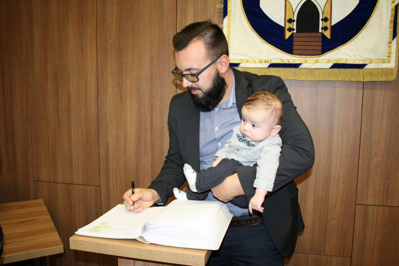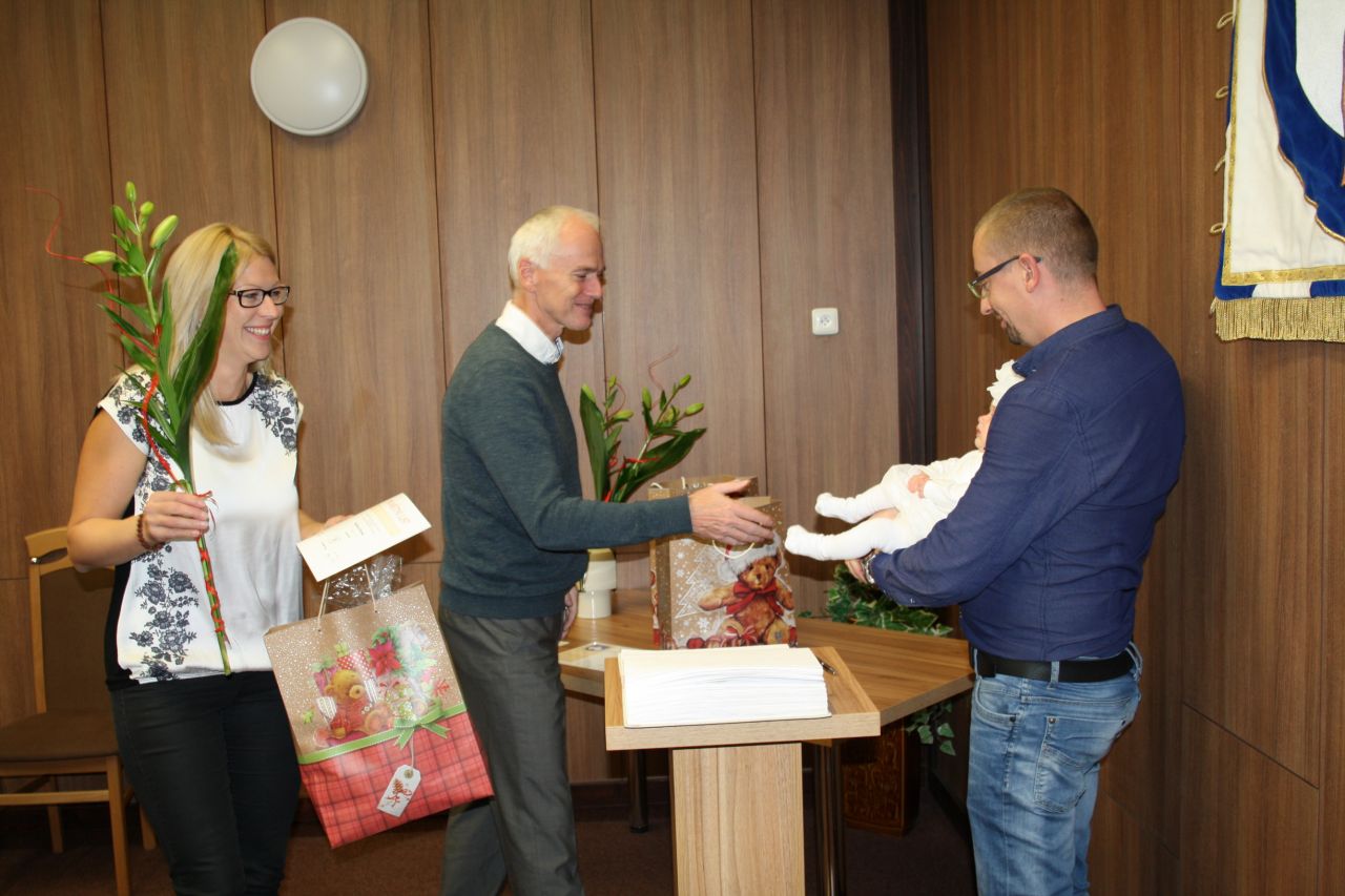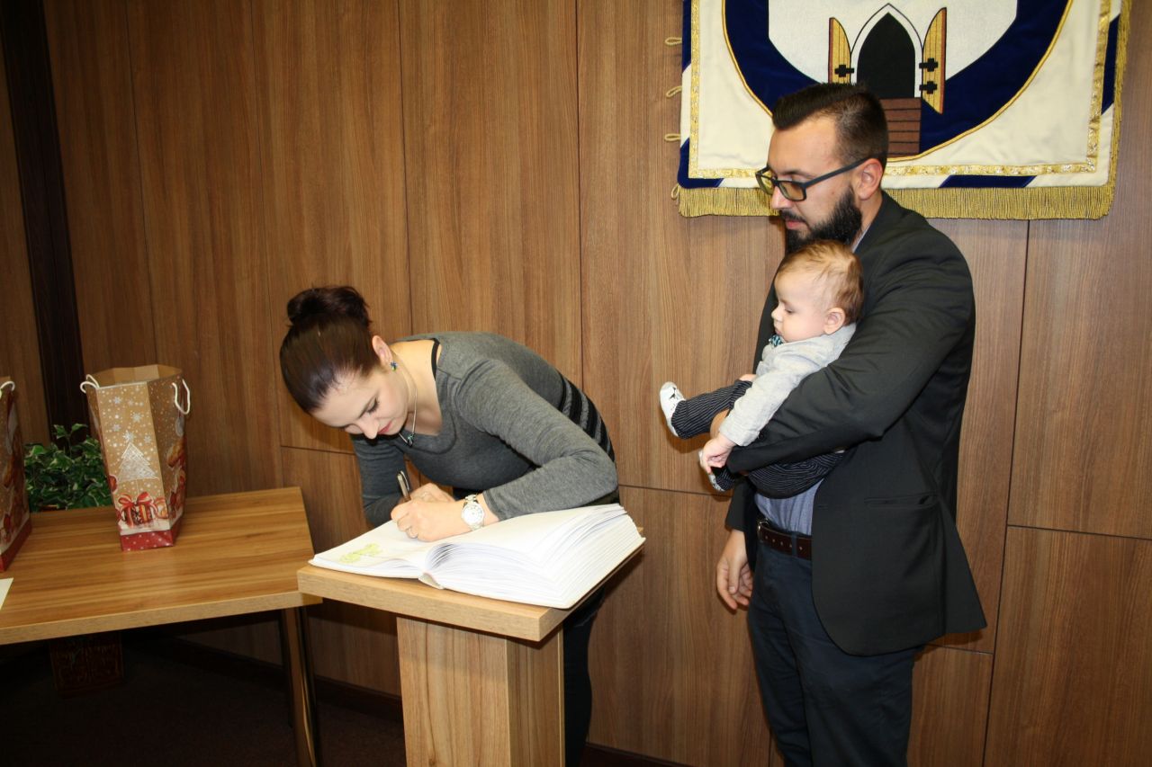 Rodiče se tradičně podepsali do pamětní knihy a obdrželi drobné dary pro svá dítka.